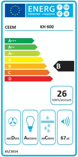 - Energiafogyasztás: 26 kWh/év