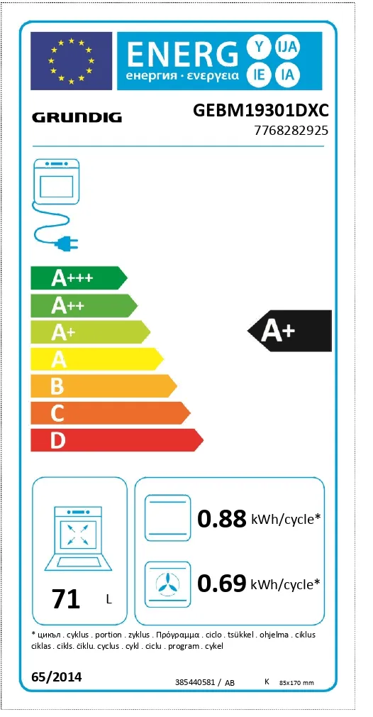 - Energiafogyasztási értékek (EU 65/2014 rendelet)
