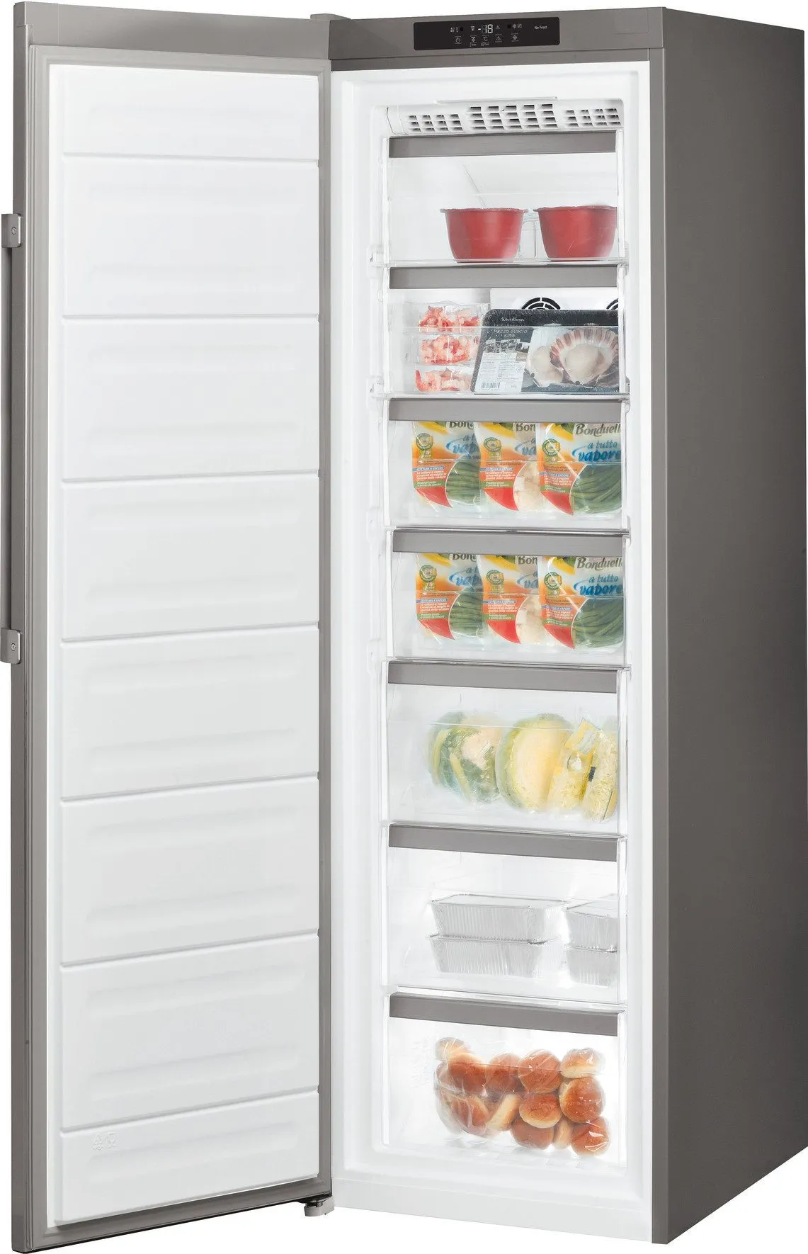 - BAUKNECHT GKN D257GS IN Fagyasztó (szabadon álló, D energiaosztály, 257 l nettó űrtartalom, NoFrost, kijelző, 7 fiók, 59,5 cm széles, 187 cm magas, rozsdamentes acél hatású)