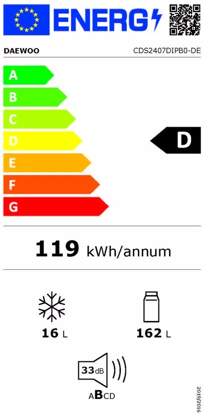 - Energiahatékonysági osztály (A-tól G-ig) (EU 2017/1369) D