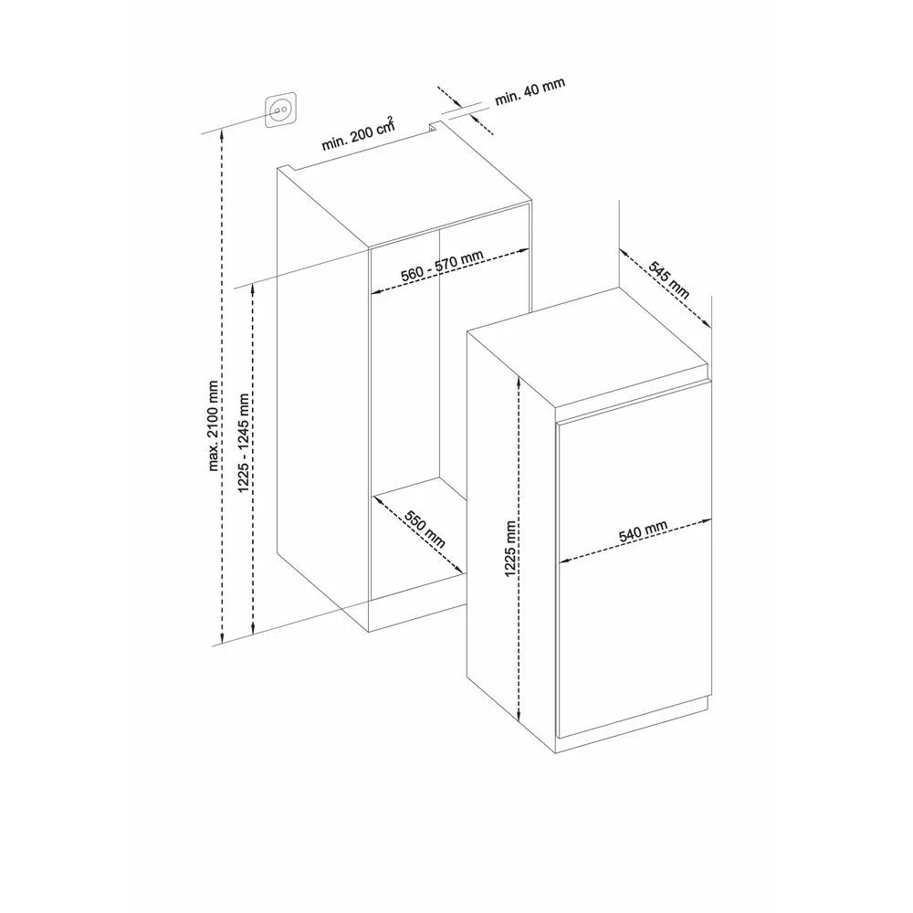 - Beépítési méretek (Ma x Szé x Mé) mm-ben: 1225-1245 x 560-570 x 550