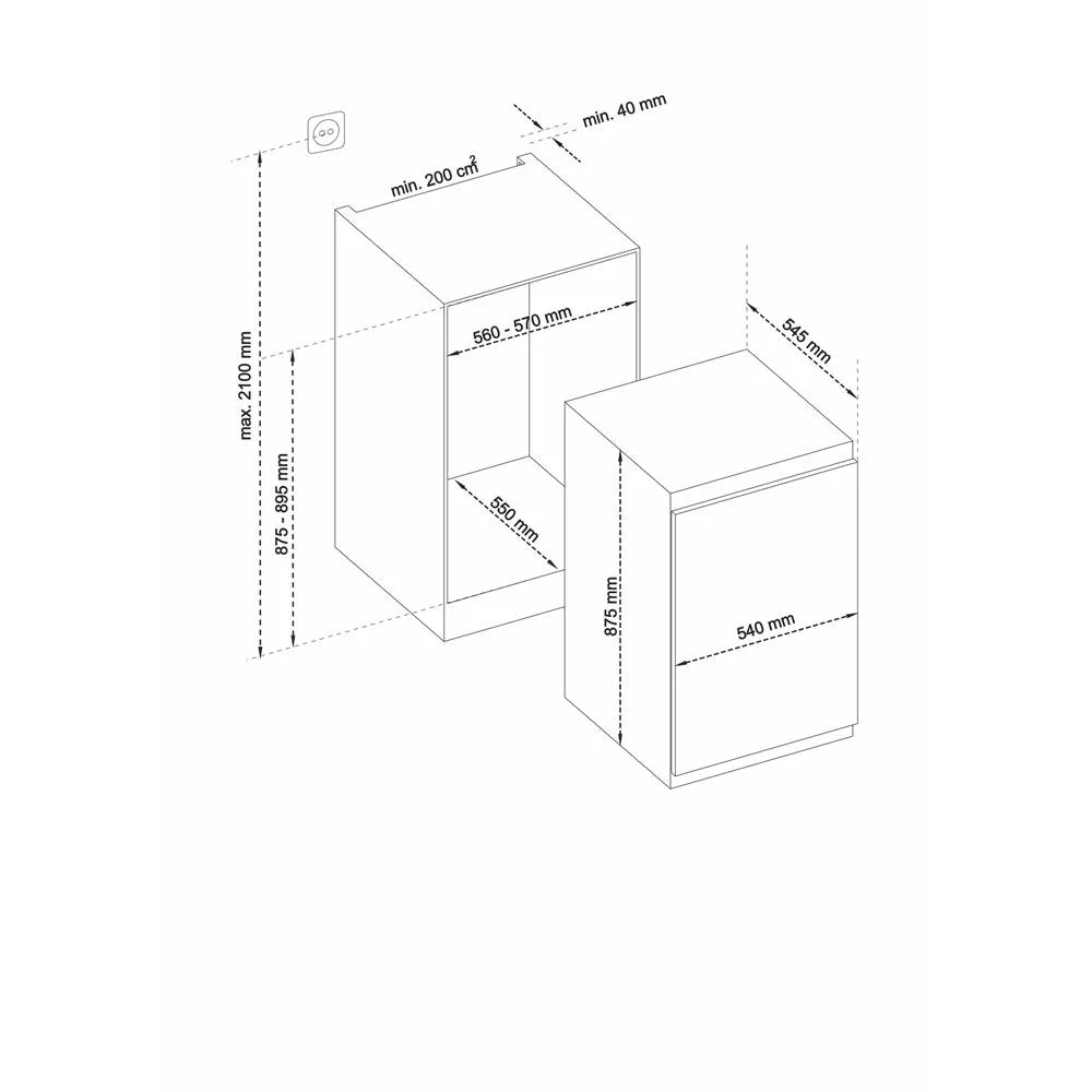 - Beépítési méretek (Ma x Szé x Mé) mm-ben: 875-895 x 560-570 x 550
