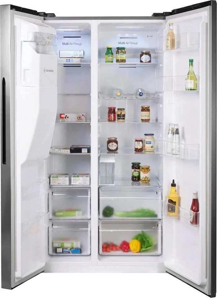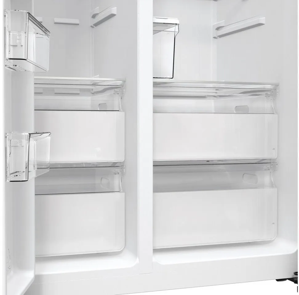 - Az »RSIM535ACE« egy szabadon álló, side-by-side hűtőszekrény a Hisense-től, amely lenyűgöző magas funkcionalitásával tűnik ki. 190 literes fagyasztó- és 376 literes hűtőkapacitásával a modell mérete 91,5 x 178,6 x 69,8 cm (Sz/M/Mé). A NoFrost funkciónak köszönhetően a készüléket soha nem kell leolvasztani. A gyümölcsök és zöldségek a CrispZone fióknak köszönhetően tovább maradnak frissek és ropogósak. A készülék jégkészítővel és vízadagolóval is fel van szerelve. Két fagyasztófiók is rendelkezésre áll az élelmiszerek tárolására. A készülék belsejében lévő hőmérséklet a külső kijelzőn jelenik meg. Nem kell aggódnod az ételek elhelyezése miatt a side-by-side hűtőszekrényben, mivel a MultiAirflow rendszer biztosítja az állandó és egyenletes belső hőmérsékletet. A gyorsfagyasztó funkció lehetővé teszi az élelmiszerek különösen gyors lehűtését és fagyasztását. Ha az ajtó túl sokáig nyitva marad, a hűtőszekrény figyelmeztető jelzéssel jelzi. A LED belső világítás megkönnyíti a keresett termékek megtalálását. Azok számára, akik side-by-side hűtőszekrényt keresnek, a Hisense RSIM535ACE kiváló választás.